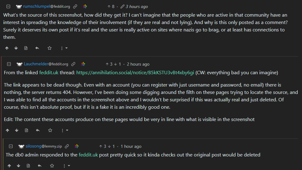 The screenshot is supposedly from a Nazi forum and they claim to have infiltrated db0 and possibly other instances by becoming admins.